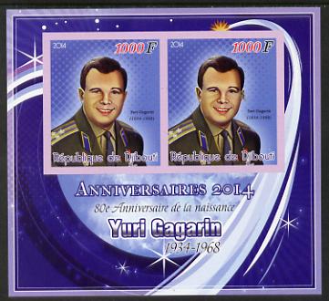 Djibouti 2014 Anniversaries - Yuri Gagarin imperf sheetlet containing two values unmounted mint