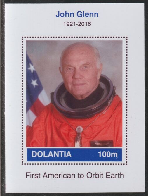Dolantia (Fantasy) John Glenn imperf deluxe sheetlet on glossy card (75 x 103 mm) unmounted mint