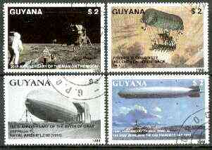 Guyana 1988 Aviation Achievements (Man on Moon, Zeppelins, etc) complete set of 4 fine cto used. Sc #2008