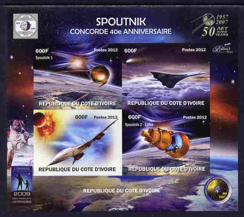 Ivory Coast 2012 Concorde 40th Anniversary - Sputnik imperf sheetlet containing 4 values unmounted mint . Note this item is privately produced and is offered purely on its thematic appeal, it has no postal validity