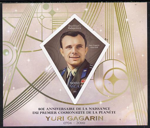 Madagascar 2014 80th Birth Anniversary of Yuri Gagarin imperf deluxe sheet containing one diamond shaped value unmounted mint