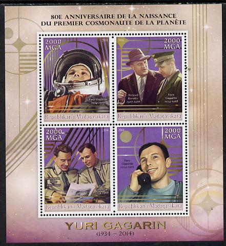 Madagascar 2014 80th Birth Anniversary of Yuri Gagarin perf sheetlet containing 4 values unmounted mint