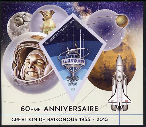 Madagascar 2015 60th Anniversary of Space Exploration imperf deluxe sheet containing one diamond shaped value unmounted mint