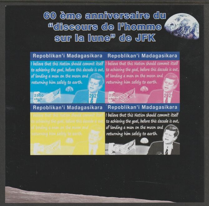 Madagascar 2021 60th Anniversary of JFK's Man on the Moon speech, #2 imperf sheetlet containing 4 values unmounted mint. Note this item is privately produced and is offered purely on its thematic appeal