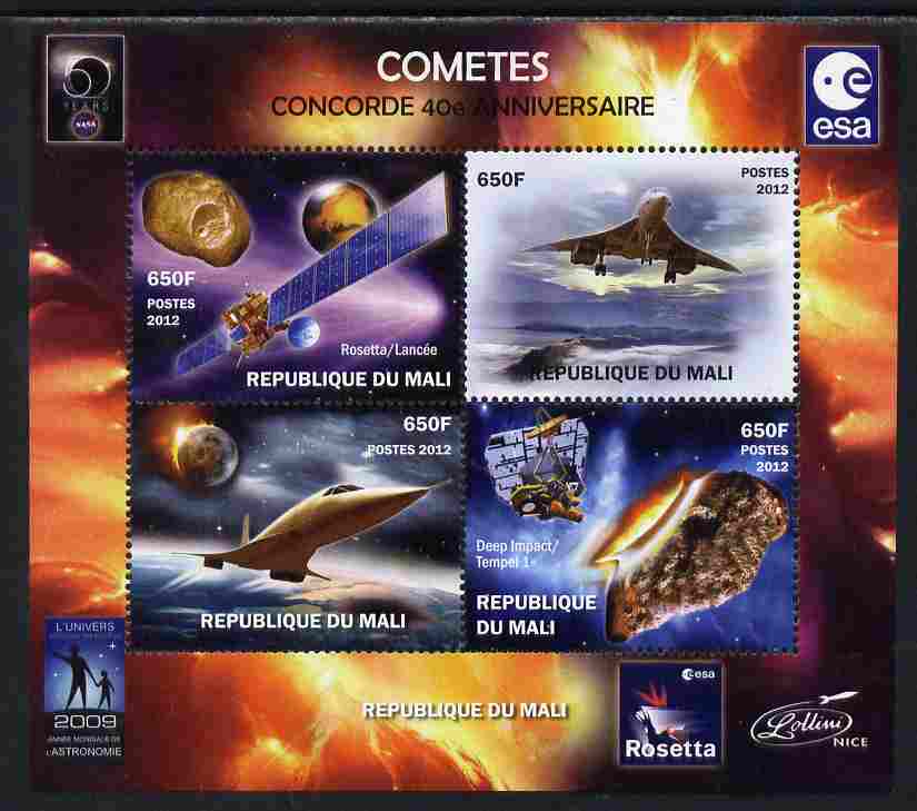Mali 2012 Concorde 40th Anniversary - Comets perf sheetlet containing 4 values unmounted mint. Note this item is privately produced and is offered purely on its thematic appeal