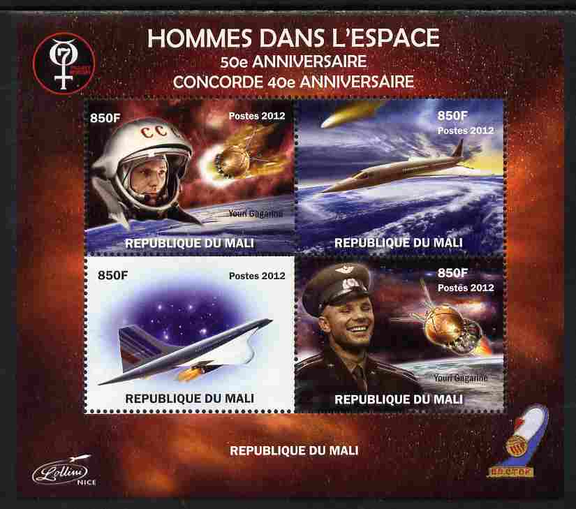 Mali 2012 Concorde 40th Anniversary - Men in Space perf sheetlet containing 4 values unmounted mint. Note this item is privately produced and is offered purely on its thematic appeal
