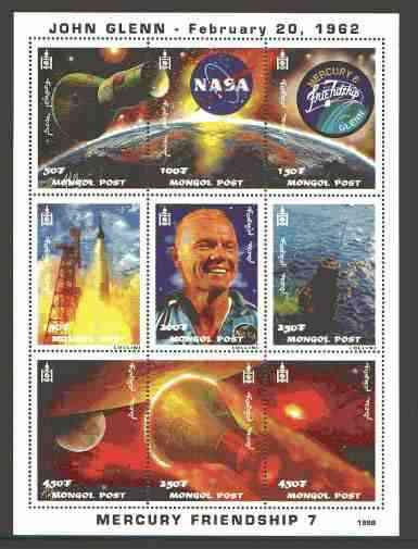 Mongolia 1998 John Glenn Return To Space #02 perf sheetlet containing set of 9 values unmounted mint