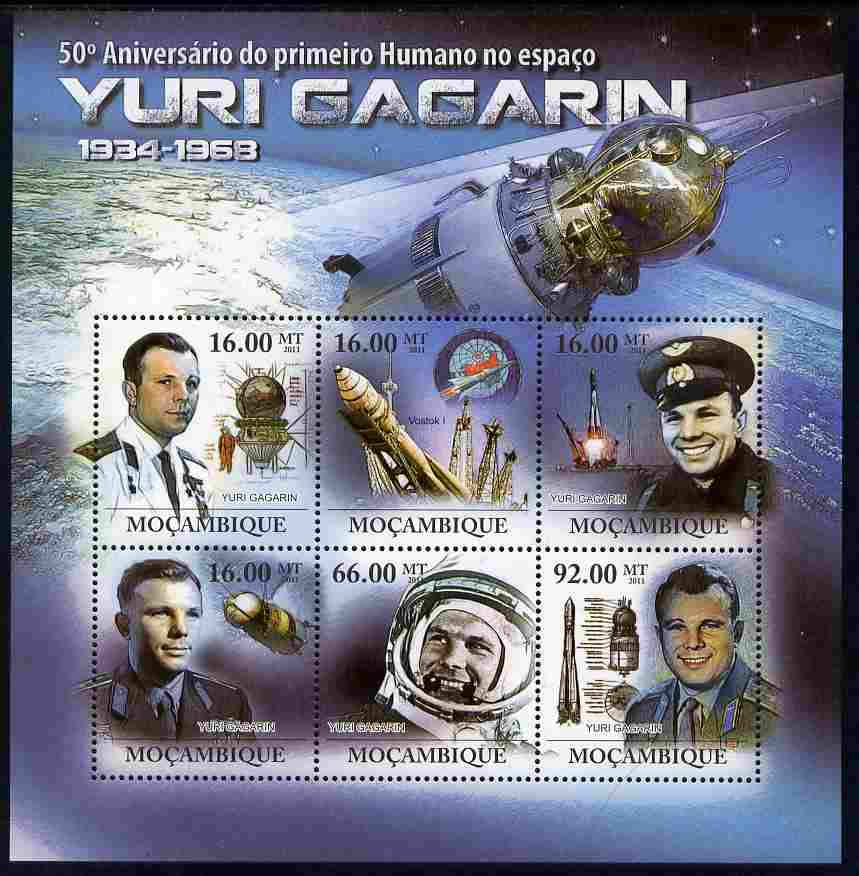 Mozambique 2011 50th Anniversary of First Man in Space - Yuri Gagarin perf sheetlet containing 6 values unmounted mint