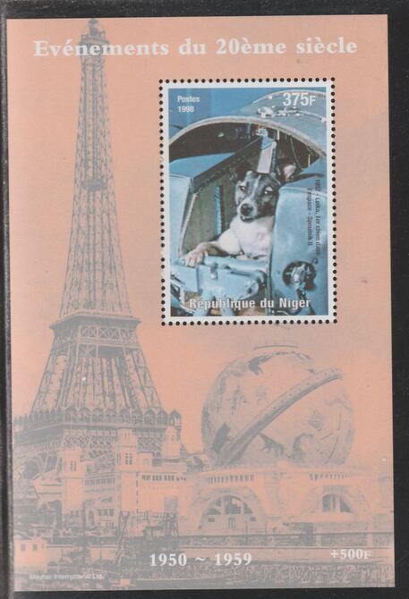 Niger Republic 1998 Events of the 20th Century 1950-1959 Space Dog Laika perf souvenir sheet unmounted mint. Note this item is privately produced and is offered purely on its thematic appeal