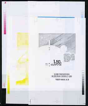 North Korea 1998 Artificial Satelitte 1w50 m/sheet, the set of 5 imperf progressive proofs comprising the 4 individual colours (magenta, yellow, blue & black plus gold & silver composite) unmounted mint