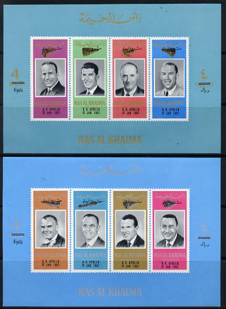Ras Al Khaima 1967 Apollo Disaster opts on US Astronauts set of 2 imperf m/sheets, Mi BL 36 & 37 unmounted mint