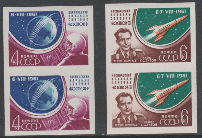 Russia 1961 Second Manned Space Flight set of 2 in IMPERF pairs (SG 2622-23B) unmounted mint