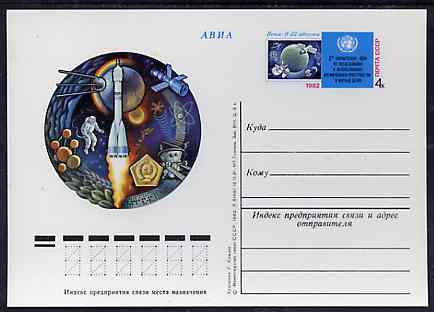 Russia 1982 Space Acievements 4k postal stationery card (Rocket & symbols) unused and very fine
