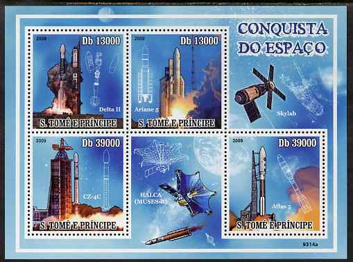 St Thomas & Prince Islands 2009 Conquest of Space perf sheetlet containing 4 values unmounted mint