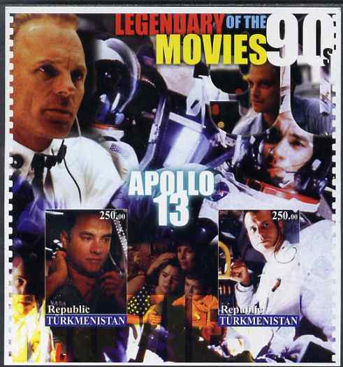 Turkmenistan 2002 Legendary Movies of the '90's - Apollo 13, large imperf sheetlet containing 2 values unmounted mint