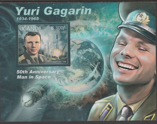 Uganda 2012 Yuri Gagarin perf souvenir sheet,containing 1 value unmounted mint.t.