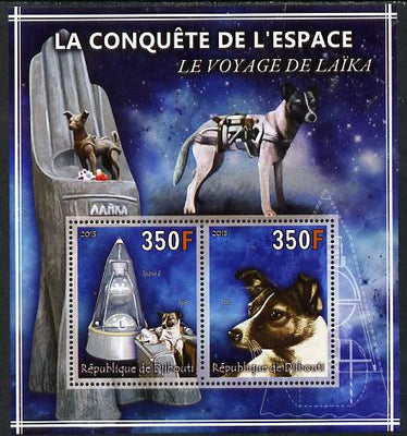 Djibouti 2013 Conquest of Space - Laika Space Dog perf sheetlet containing 2 values unmounted mint