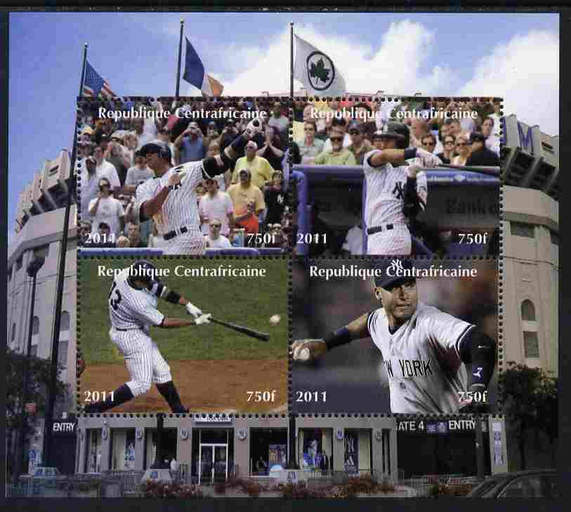 Central African Republic 2011 Baseball perf sheetlet containing 4 values unmounted mint. Note this item is privately produced and is offered purely on its thematic appeal, it has no postal validity