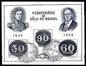 Brazil 1943 Stamp Centenary imperf m/sheet (Bull's Eye) fine used with First Day Exhibition cancel, SG MS 682a, Mi BL 6/1