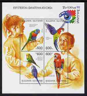 Bulgaria 1999 Stamp Exhibition sheetlet of 4 featuring children with parrots and budgerigars, unmounted mint