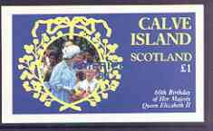 Calve Island,1986 Queen's 60th Birthday imperf souvenir sheet (£1 value) with AMERIPEX opt in blue unmounted mint