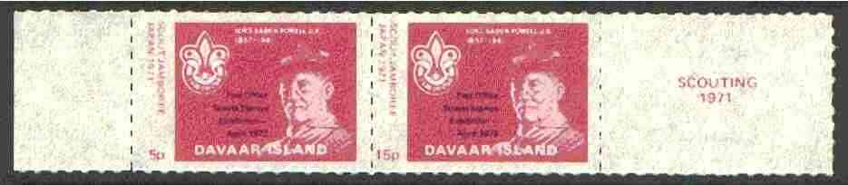 Davaar Island 1973 Scouts Stamp Exhibition opt on Japan Scout Jamboree perf set of 2 (5p & 15p claret) unmounted mint