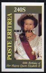 Eritrea 1986 Queen's 60th Birthday imperf deluxe sheet (240s value) with AMERIPEX opt in black unmounted mint