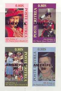 Eritrea 1986 Queen's 60th Birthday imperf sheetlet of 4 with AMERIPEX opt in black unmounted mint