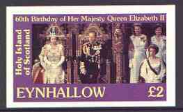 Eynhallow 1986 Queen's 60th Birthday imperf deluxe sheet (£2 value) with AMERIPEX opt in black unmounted mint