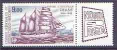 French Southern & Antarctic Territories 1984 Nordposta Stamp Exhibition - Survey Barquentine Gauss 9f plus se-tenant label unmounted mint, SG 195