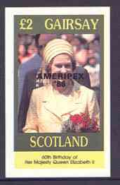 Gairsay 1986 Queen's 60th Birthday imperf deluxe sheet (£2 value) with AMERIPEX opt in black unmounted mint