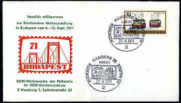 Germany - West Berlin 1971 Commemorative cover for Budapest '71 bearing 10pf electric Tram stamp cancelled with special illustrated cancel