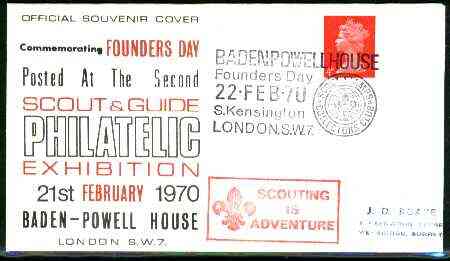Great Britain 1970 commemorative cover for the Second Scout & Guide Philatelic Exhibition with special illustrated Baden-Powell House cancel
