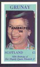 Grunay 1986 Queen's 60th Birthday imperf souvenir sheet (£1 value) with AMERIPEX opt in black unmounted mint