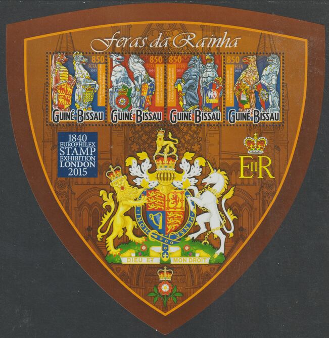 Guinea - Bissau 2015 Europhilex Stamp Exhibition Shield shaped perf sheetlet containing 4 values unmounted mint