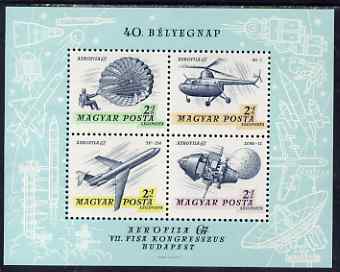 Hungary 1967 'Aerofila '67' Airmail Stamp Exhibition #2 perf m/sheet (Parachute, Helicopter, Airliner & Lunar 12 ) unmounted mint, SG MS 2272
