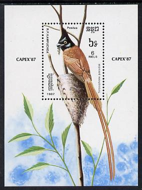 Kampuchea 1987 Capex '87 Birds (Flycatcher) m/sheet (SG MS 830)