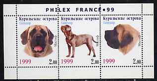 Kuril Islands 1999 Philex France Stamp Exhibition - Dogs #06 (Mastiff) perf sheetlet containing 3 values unmounted mint