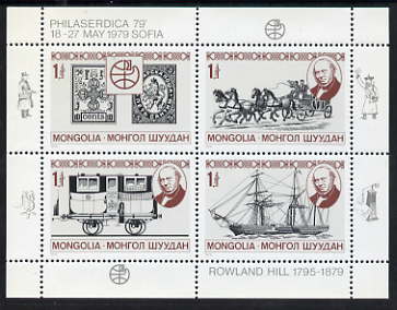 Mongolia 1979 Death Centenary of Sir Rowland Hill & 'Philaserdica 79' perf sheetlet containing set of 4 values unmounted mint, SG 1211a