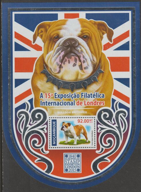 Mozambique 2015 Europhilex Stamp Exhibition - Dogs, shaped perf sheetlet containing 1 value,unmounted mint