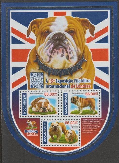 Mozambique 2015 Europhilex Stamp Exhibition - Dogs, shaped perf sheetlet containing 3 values,unmounted mint