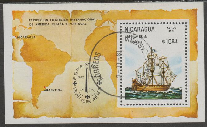 Nicaragua 1981 Sailing Ships - Espans Stamp Exhibition m/sheet fine cds used, SG MS2303