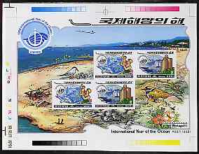 North Korea 1998 International Year of the Ocean (UNESCO & Portugal 98) imperf proof of m/sheet with colour codes & bars in outer margins unmounted mint, exceptionally rare thus