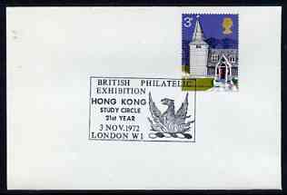 Postmark - Great Britain 1972 cover bearing illustrated cancellation for British Philatelic Exhibition, Hong Kong Study Circle 21st Year (showing a Phoenix)
