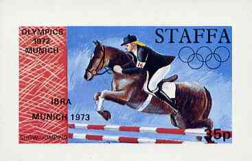 Staffa 1973 Munich Olympics (Showjumping) imperf souvenir sheet (35p value) opt'd IBRA Munich 1973 unmounted mint