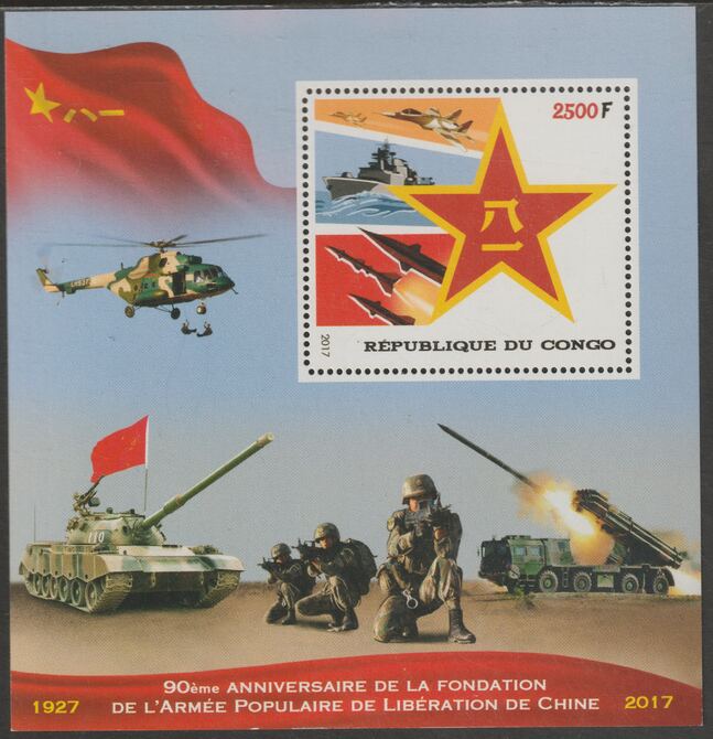 Congo 2017 Chinese Army 90th Anniversary perf sheet containing one value unmounted mint
