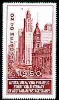 Australia 1950 National Philatelic Exhibition & Centenary perf label in red inscribed 'On to Melbourne', minor wrinkles but unmounted mint*