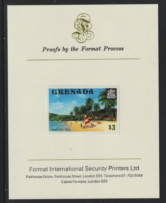 Grenada 1975 Grand Anse Beach $3 imperf proof mounted on Format International proof card (as SG 666)