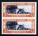 Guatemala 1935 Exterior 5q imperf pair being a 'Hialeah' forgery on gummed paper (as SG320)