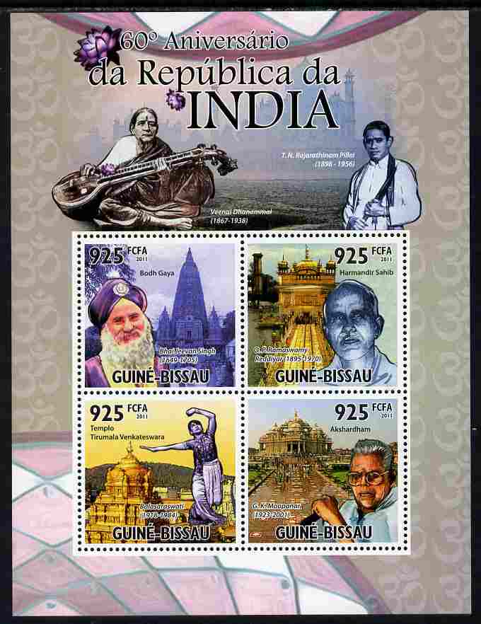 Guinea - Bissau 2011 60th Anniversary of the Republic of India perf sheetlet containing 4 values unmounted mint Michel 5239-42